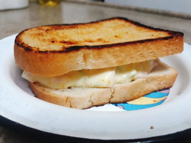 Ingredientes: • 2 fatias de pão de forma • Manteiga • 2 fatias de peito de peru em cubos • 1 colher (sobremesa) de alho-poró • ¼ colher (chá) de mostarda • 3 colheres (sobremesa) de maionese Modo de Preparo: 1. Passe a manteiga nas fatias de pão de forma, leve na frigideira até dourar.…