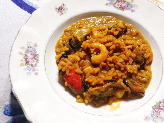 Ingredientes: 1 pacote de frutos do mar de Paella 1 colher (sopa) manteiga 1 colher (sopa) azeite 1 cebola pequena ralada 1 xícara de arroz arbóreo ¼ xícara de vinho branco Caldo de legumes ou frutos do mar 1 colher (chá) de sal 1 colher (sopa) de cúrcuma 3 colheres (sopa) manteiga Modo de Preparo:…