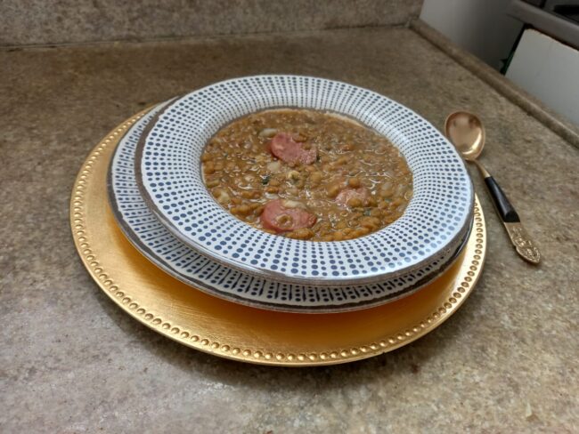 Ingredientes • 3 colheres (sopa) de azeite de oliva • 3 dentes de alho picados • 1 cebola média picada • 250 g de linguiça defumada em rodelas finas • 2 folhas de louro • 3 colheres (sopa) de salsinha fresca picada • 300 g de lentilha • 1 litro de água fervente • 1…