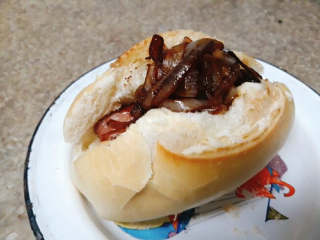 Pão com Linguiça e Cebola Caramelizada