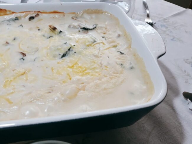 Ingredientes:1 kg Tilápia em filéSal e PimentaFarinha1 litro de leite1/2 cebola1 folhas de louro3 cravos da índia1 colher (chá) de sal2 colheres (sopa) manteiga3 colheres (sopa) farinha2 dentes de alho1 maço de espinafre200 gr de cogumelos paris fatiadoQueijo parmesão ralado Modo De Preparo:1.Comece com o molho branco: ferva 1 litro de leite com a cebola…