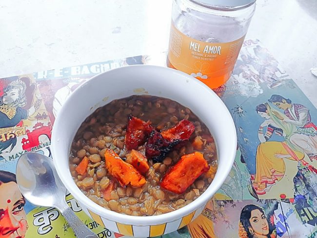 Rendimento Serve 4 pessoas Tempo de preparo 1 h 10 min + 12 h para deixar as lentilhas de molho Ingredientes • 200 g de lentilhas; • 1 abóbora japonesa; • 1 cebola picada; • 1 dente de alho picado; • 1 cenoura picada; • 1 talo de salsão finamente fatiado; • 1 colher (chá)…