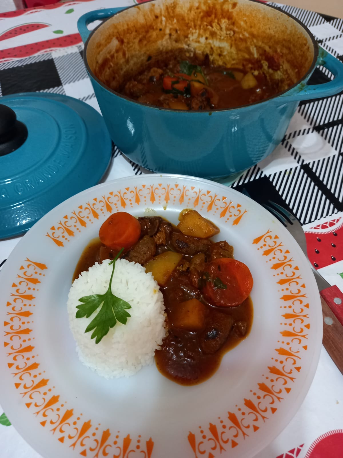 𝙄𝙣𝙜𝙧𝙚𝙙𝙞𝙚𝙣𝙩𝙚𝙨 1 xícara de proteína de soja graúda e escura 1 xícara de água quente 1 colher(sopa) de vinagre 1 batata 1 cenoura 1/2 cebola (pode colocar mais, eu gosto de pouca cebola) 1 xícara de molho de tomate 800 ml de caldo de legumes 3 colheres (sopa) de shoyu Temperos: páprica picante, cúrcuma, salsinha,…