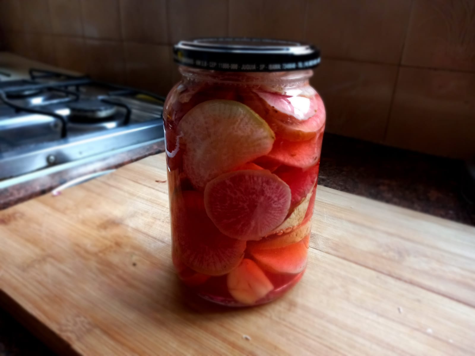 Ingredientes: • 4 rabanetes • 1 pedaço de gengibre • 1 dente de alho • 1 xícara de vinagre de álcool • 1 xícara de água • 1 pitada de chimichuri • 1 pitada de sal Modo de Preparo: 1. Primeiro higienize o vidro deixando 30 minutos ferver numa panela abundante de água. 2. Numa…