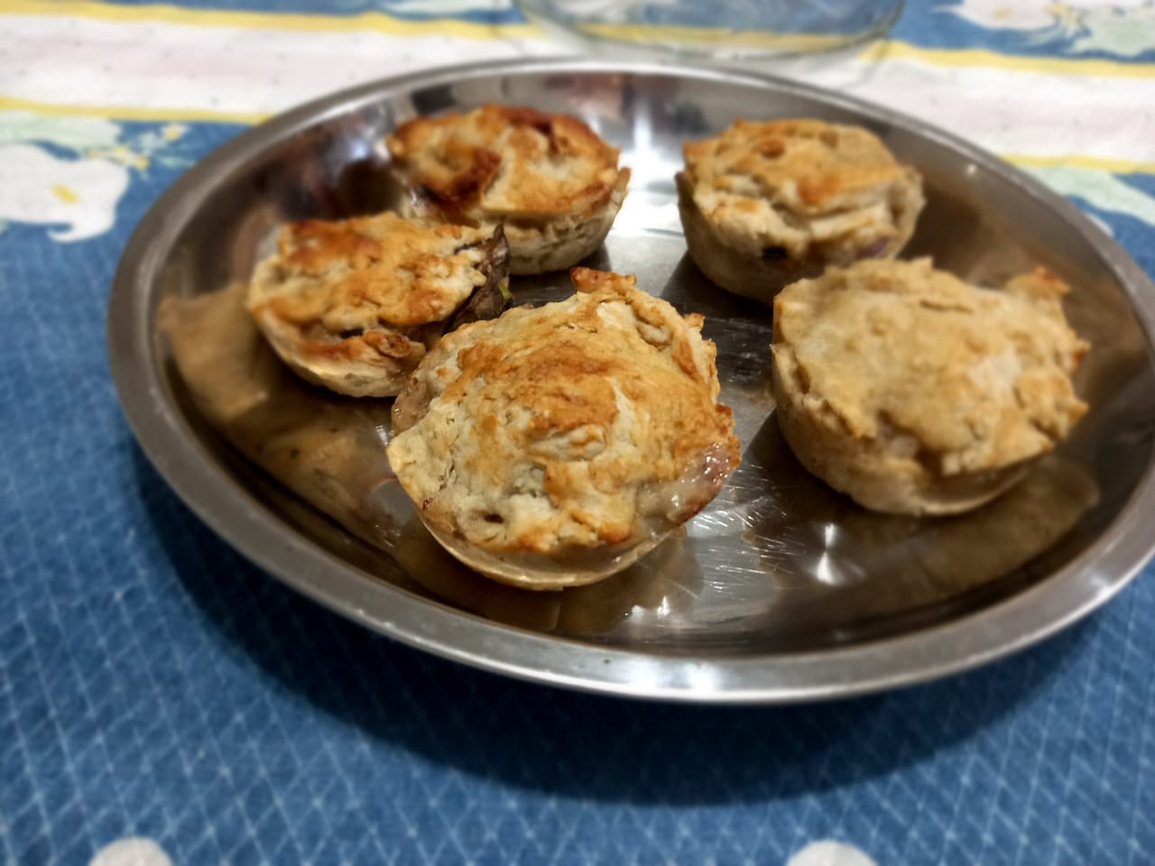 ngredientes: Massa • 1 ½ xícara de farinha de trigo • ¼ xícara de óleo • 1 colher (sopa) manteiga vegetal • ½ colher (chá) de sal • 5 colheres (sopa) de água • Melado com água para dourar Recheio: • 1 colher (sopa) de azeite • ¼ cebola picada • 1 colher (chá) de…
