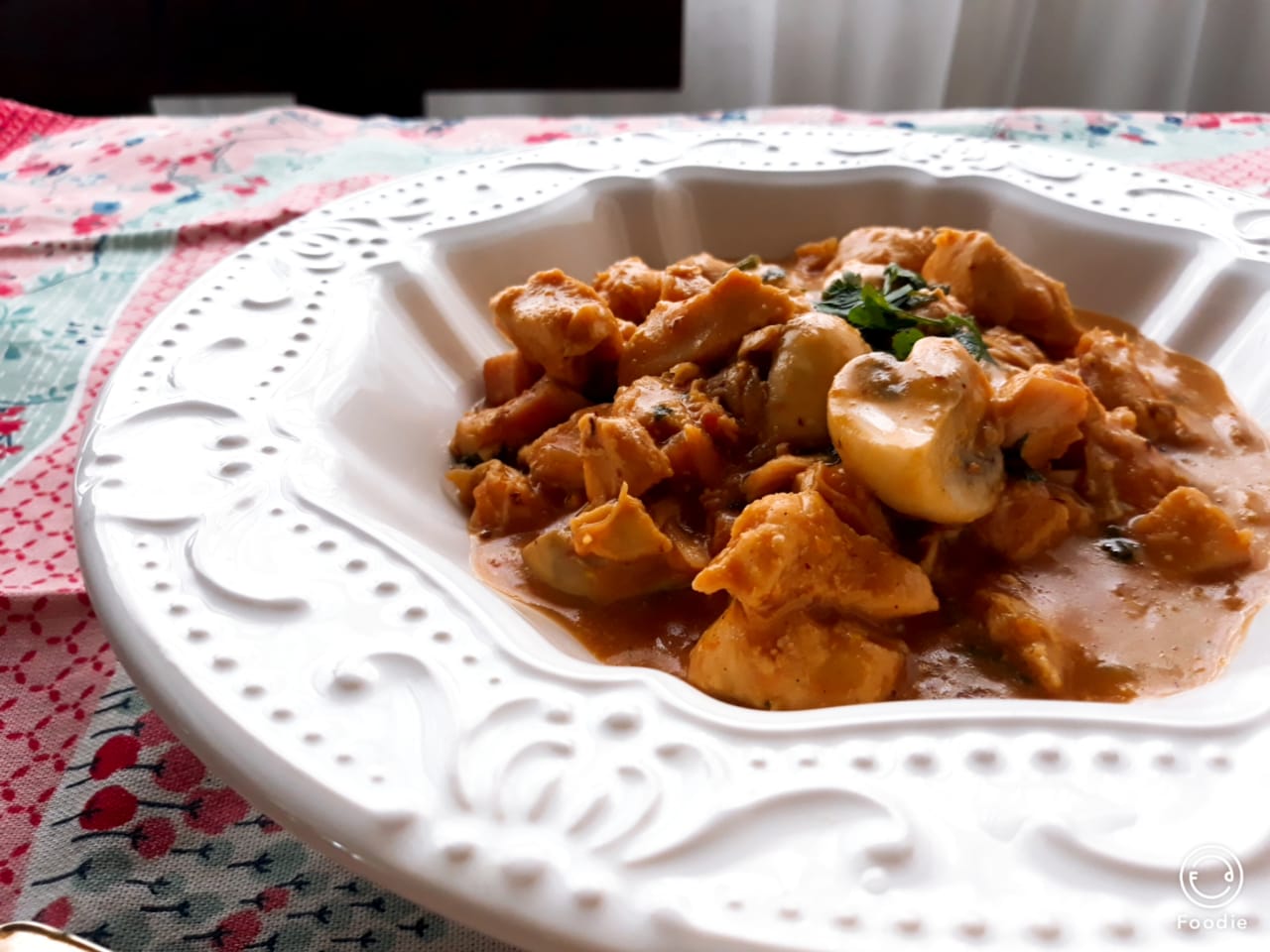 Ingredientes: • 1 colher (sopa) manteiga • 1 colher (sopa) azeite • 1 kg de frango cortado em cubos pequenos • ¼ xícara de conhaque • ½ cebola ralada • 1 caixa de cogumelo paris cortado em 4 in natura • ¼ xícara de ketchup • 2 colheres (sopa) mostarda • 1 colher (sopa) molho…