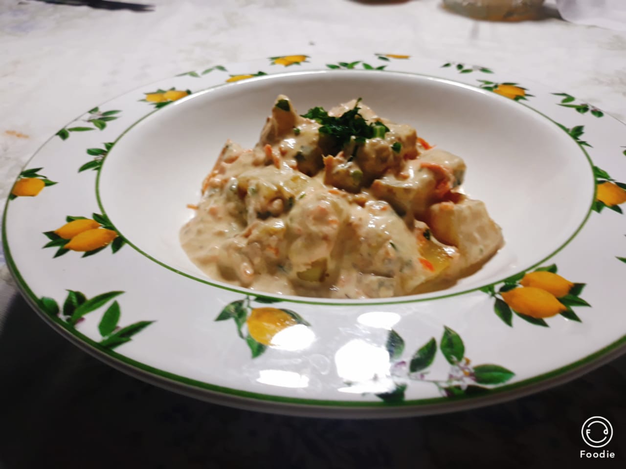 Ingredientes: • 5 batatas grandes • 1 lata de atum • ½ cenoura ralada • ¼ xícara de azeitona verde sem caroço picado • 3 colheres (sopa) de salsinha picada • 1 colher (chá) de sal • 1 colher (chá) de mostarda • 1 colher (chá) de molho inglês Maionese de Leite • 1 colher…
