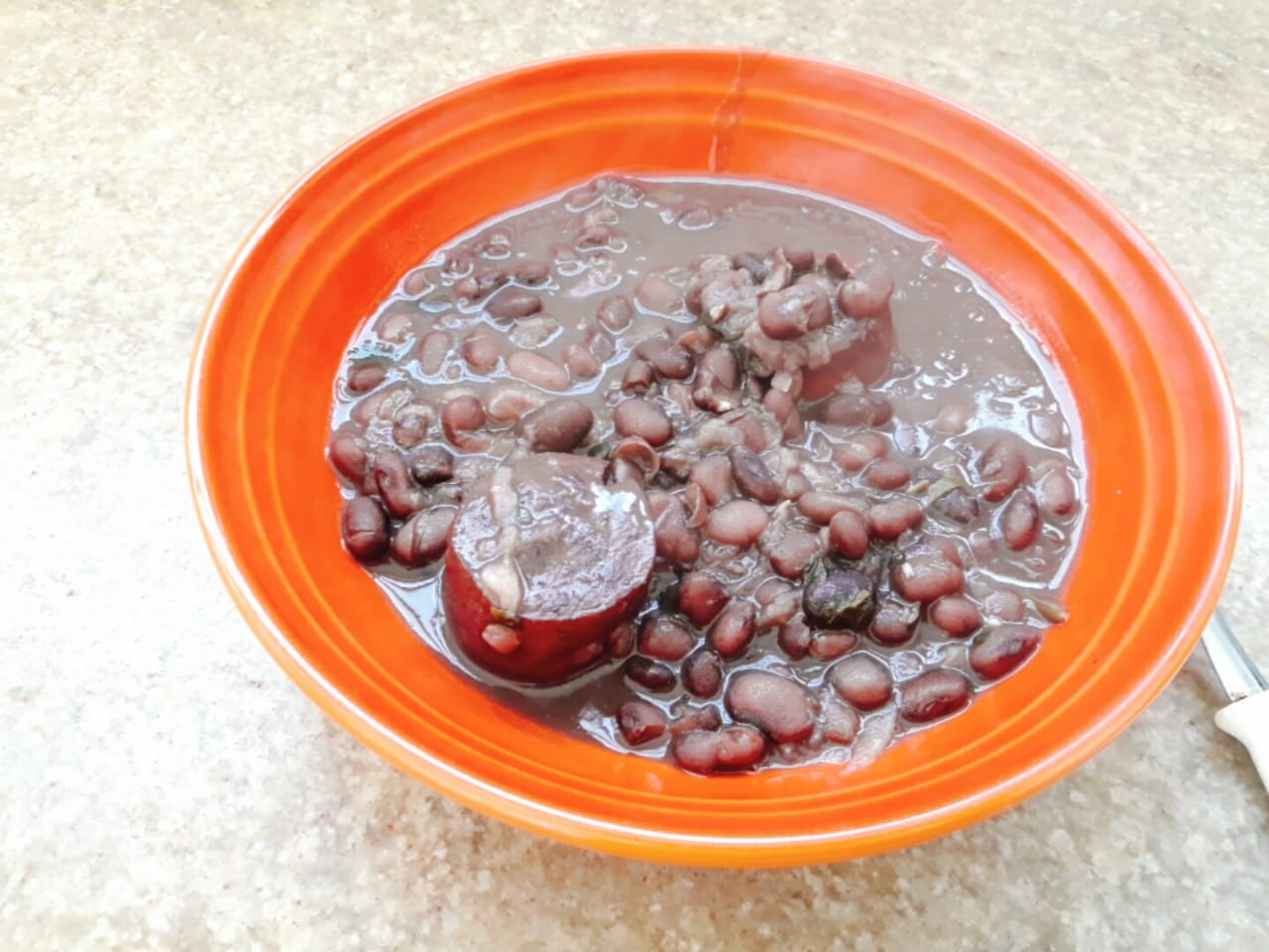 Ingredientes:250 gr feijão (de molho na água 12 horas)1 litro de água1 folha de louro1/2 linguiça calabreza de fumada (sem pele e em rodelas)1/2 colher (chá) de sal50 gr de bacon em cubos1 cebola picada ou ralada2 colheres (sopa) manteiga de garrafa (pode ser manteiga, azeite ou nada)Coentro1/2 colher (chá) de sal Modo de Preparo:Lave…