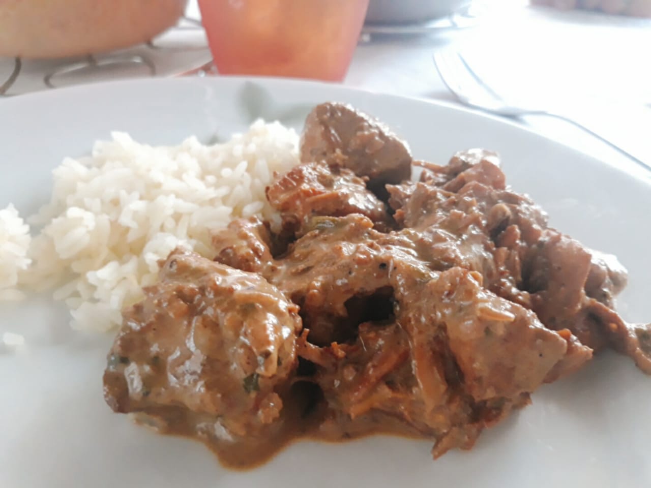 Ingredientes:1 kg de peito e frango em cubos1/2 cebola picada2 dentes de alho1 colher (chá) de sal1 pitada pimenta de caiena150 ml de vinho2 colheres (sopa) vinagre200 ml de café forte200 ml de creme de leiteCoentro Modo de Preparo:Numa panela funda, frite muito bem o frango e coloque o sal e a pimenta agora.Quando dourar…
