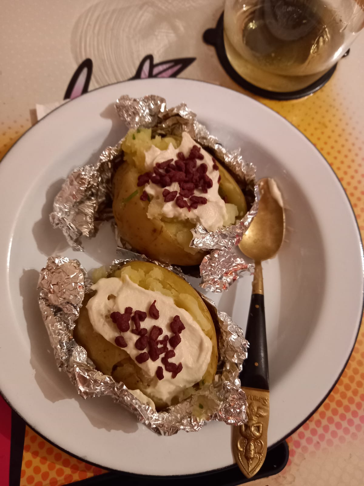 Ingredientes: 4 batatas pequenas ½ colher (chá) de sal 2 litros de água Papel alumínio 2 colheres (sopa) de manteiga vegana 2 colheres (sopa) de água gelada Sal Salsinha Mascarpone ou Cream Cheese Vegano Bacon vegano   Modo de Preparo: Use uma panela grande com sal e as batatas, Ligue o fogo e deixe fervendo…