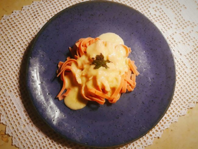 Ingredientes: • Talharim de Beterraba (usei o Piatto Ricco Per Dione) • 200 ml de leite de coco • 1 colher (sopa) azeite • 1 colher (sopa) farinha de trigo • ¼ colher (chá) de sal • ¼ colher (chá) levedura nutricional Modo de Preparo: 1. Com a água fervendo com 1 colher (chá) de…