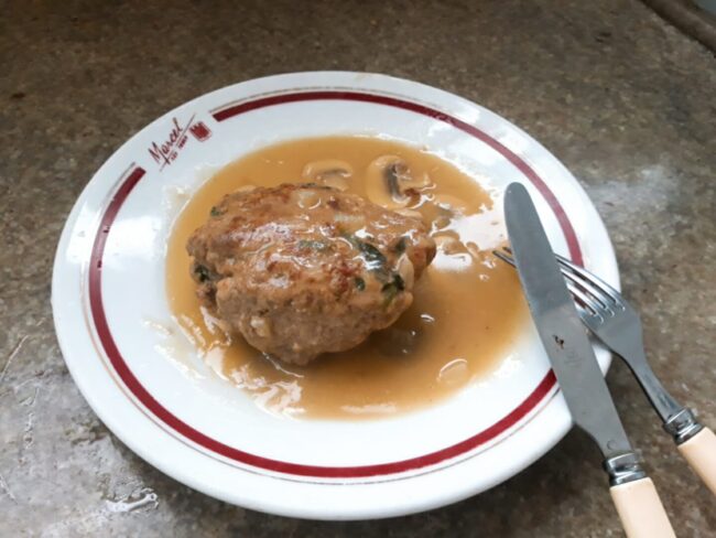 O steak Salisbury nada mais é que a carne moída moldada como se fosse um bife. Não confunda, apesar de ser parecido, não é um hambúrguer, pois é feito para ser comido com molho (nada impede que você coma como sanduíche se assim quiser). O segredo desta receita é selar a carne dos dois lados…