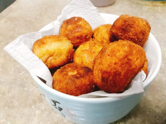 Ingredientes: • 1 lata de milho • 50 gr de bacon • ½ cebola • 2 xícaras de leite • 1 xícara de farinha de trigo • 1 colher (chá) de sal • Coentro • 2 ovos • 100 gr farinha de rosca Modo de Preparo: 1. No liquidificador bata 2/3 lata de milho, ½…