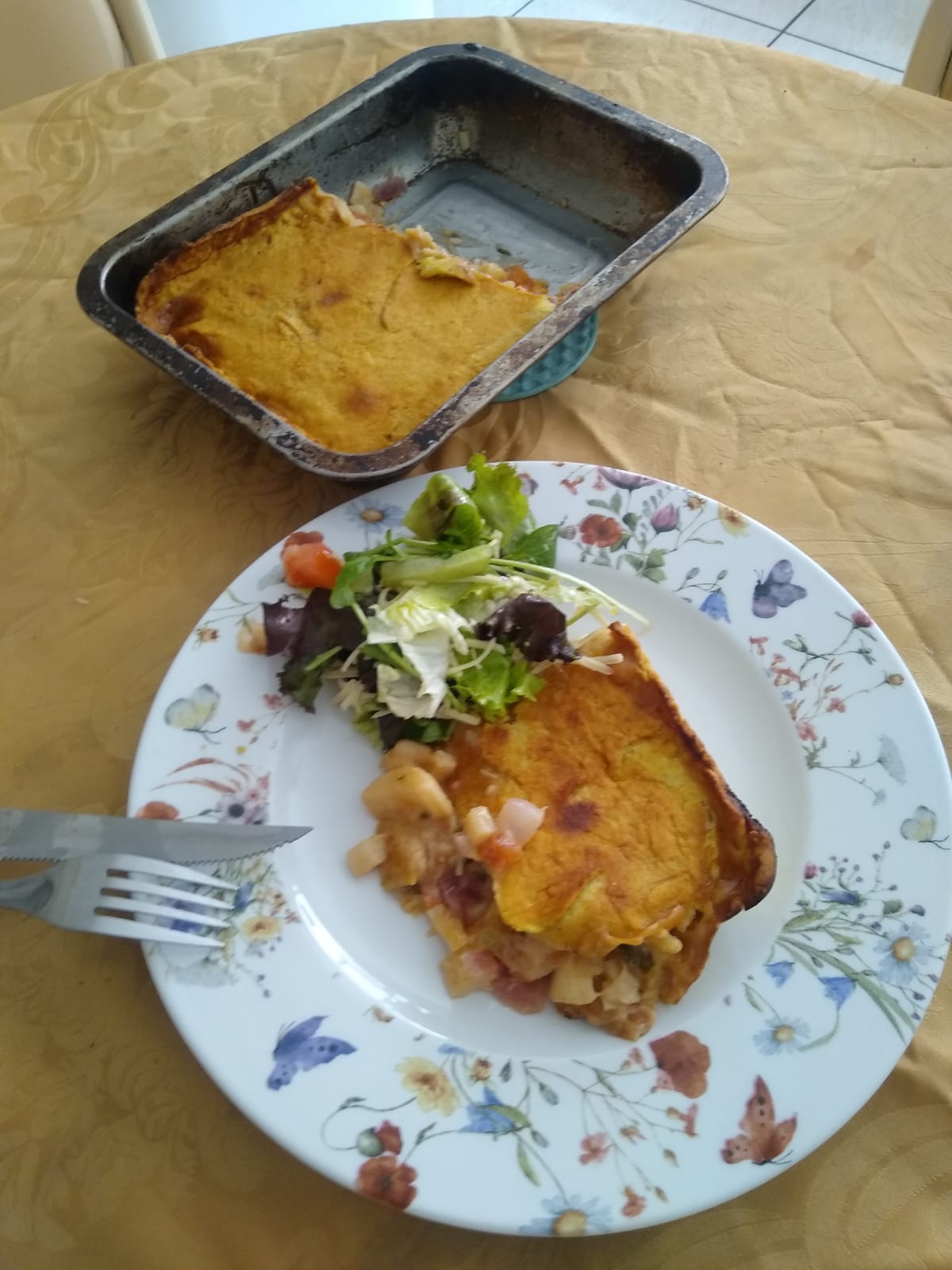 - Na assadeira vá colocando no fundo e preenchendo os furos.